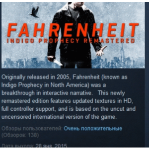 Fahrenheit: Indigo Prophecy Remastered МГНОВЕННАЯ ДОСТАВКА STEAM