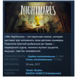 Little Nightmares is a dark adventure game with platformer and horror elements. The player controls a girl named Six, who is trying to escape from the ominous ship "The Maw", full of creepy creatures and traps. Gameplay combines puzzles, stealth and exploration. The strong visual style, soundtrack and tense atmosphere make the game a unique experience for fans of indie horror and unconventional platformers.