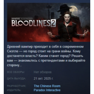 Vampire: The Masquerade - Bloodlines 2 (2025) takes players into the dark atmosphere of the battle of vampire clans for power and survival. You will find a deep role-playing system, non-linear dialogues and many options for passing, where every decision affects the development of the story. The game combines dynamic combat, city exploration and social intrigue, allowing you to create a unique character. Atmospheric setting, intense plot and modern technology make the project one of the most anticipated in the RPG genre.