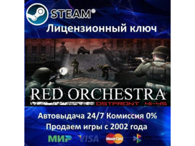 AFTER PAYMENT YOU WILL RECEIVE A DIGITAL LICENSE KEY TO ACTIVATE THE GAME IN STEAM WITHOUT REGIONAL RESTRICTIONS AFTER PAYMENT YOU WILL RECEIVE ACTIVATION KEY OF STEAM GAME WITHOUT REGION RESTRICTIONS ==================================== Steam key / ROW / Region free / WorldWide / Global ==================================== Title: Red Orchestra: Ostfront 41-45