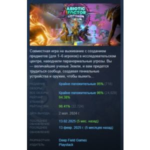 Abiotic Factor — это кооперативная научно-фантастическая игра про выживание в засекреченном исследовательском комплексе. Совместно с другими учеными вы будете крафтить, строить укрытия и отражать атаки паранормальных существ, выбрав одну из уникальных специализаций. Игра сочетает элементы хоррора, научной фантастики и песочницы с акцентом на командную работу. Вас ждут ловушки, телепорты, монстры из других измерений и нестабильные аномалии.