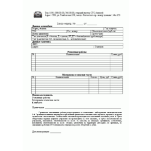 Наряд-заказ бланк на ремонт, образец форма бланка.