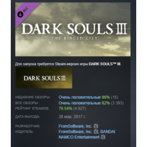 Погрузитесь в мрачный и беспощадный мир Dark Souls III – одной из лучших экшен-RPG от FromSoftware. Исследуйте готические локации, сражайтесь с грозными боссами и раскройте тайны умирающего королевства Лотрик. Динамичная боевка, глубокая RPG-система и атмосферный сюжет ждут вас. Купите Dark Souls 3 для PC, PS4 или Xbox One с удобной доставкой и окунитесь в мир тьмы и испытаний!