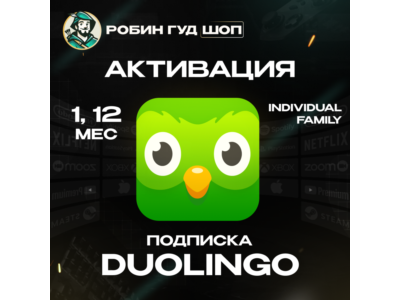 DUOLINGO SUPER/FAMILY 1/12 МЕСЯЦЕВ ПОДПИСКИ