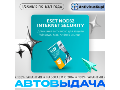 Антивирус ESET NOD32 Internet Security 1/2/3/5 ПК 1 ГОД