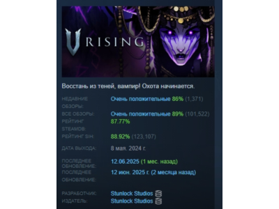✅Здесь вы можете приобрести на выбор официальный КЛЮЧ Steam для активации игры и дополнений V Rising • V Rising - Базовая игра • V Rising + Legacy of Castlevania Premium Pack • V Rising + 4 DLC BUNDLE • V Rising - 4 DLC BUNDLE UPGRADE (без основной игры) • V Rising - DLC Legacy of Castlevania Premium Pack - содержит только 1 длц! ✅При оплате СБП, картой и SbeyPay комиссия 0 % ✅Доставка МОМЕНТАЛЬНО после оплаты, ключ будет в графе «Оплаченный Товар», а также хранится в Вашем личном кабинете oplata.info (ссылка будет продублирована на Вашу почту) ✅Подарок КАЖДОМУ покупателю, оставившему положительный отзыв! Подробные инструкции в конце описания.